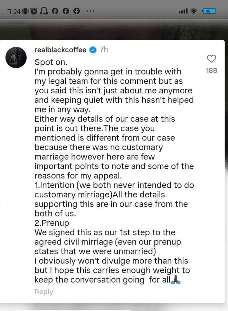 Following the Constitutional Court's (ConCourt) historic decision on antenuptial agreements made following customary marriages, which was given on Wednesday, January 21, 2026, renowned South African producer and DJ Black Coffee has spoken out