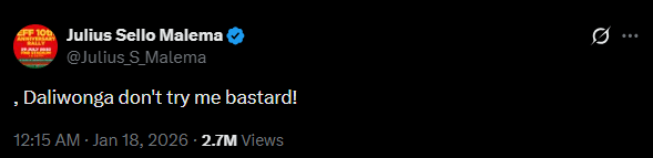 On 17 January 2026, Economic Freedom Fighters (EFF) leader Julius Malema ignited social media debate across South Africa with a terse and confrontational message to musician Daliwonga on X (formerly Twitter):
